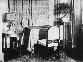 ![]() (左:統監陛下大本営御出門の風景 右:大本営御座所(現在の特別室)) |